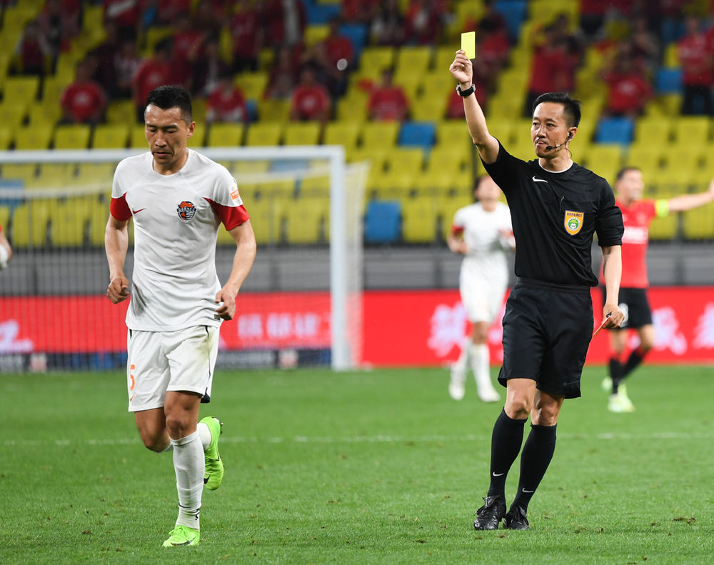 5月6日,主裁判马力向青岛海牛队球员陈纯新出示黄牌。
