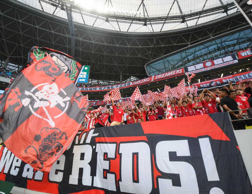 5月6日,成都蓉城队球员赛后向球迷挥手致意。